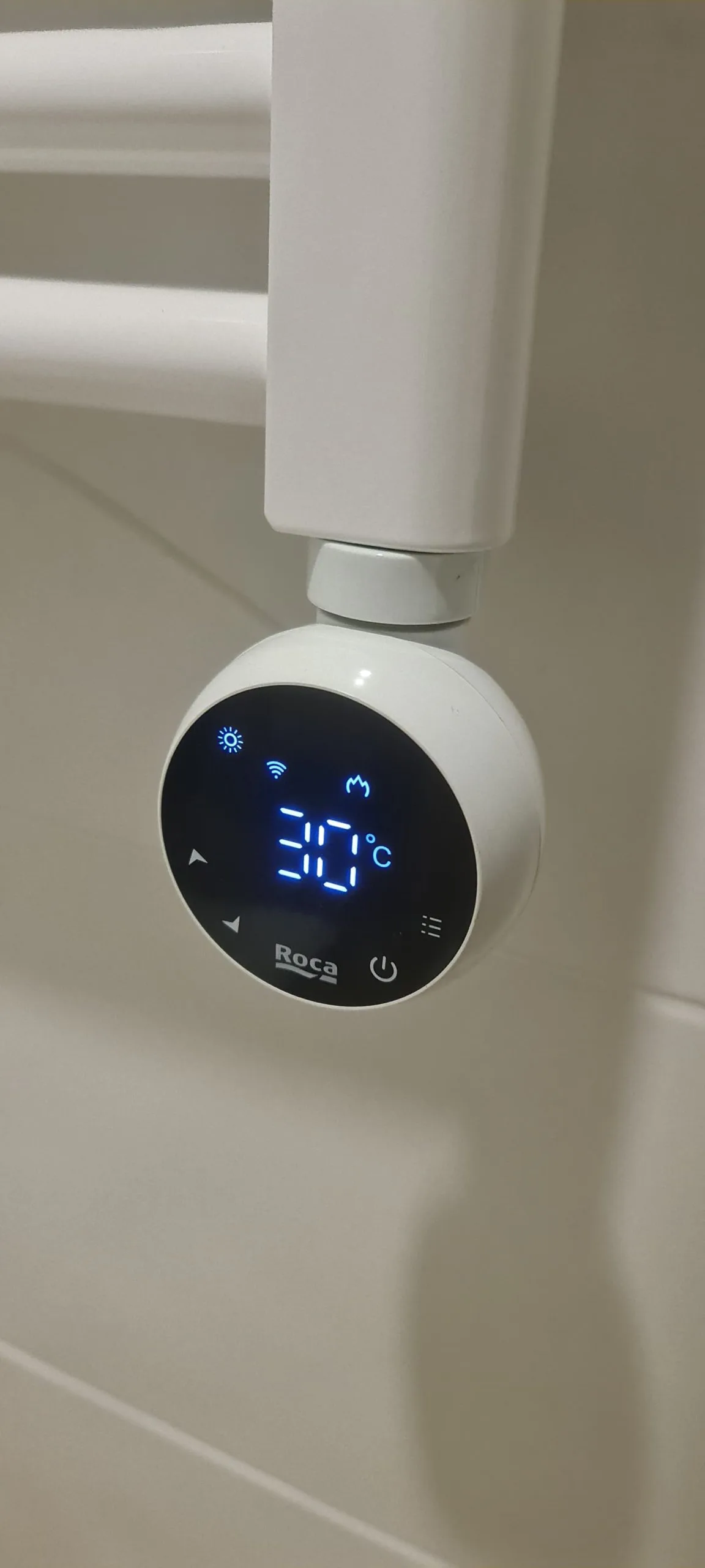 Toalheiro Elétrico Roca 300W Branco com acabamento Brilhante, termóstato digital integrado e vários modos de aquecimento. Dimensões: 500×800 mm. Ideal para manter as toalhas secas, aquecidas e a casa de banho mais confortável.